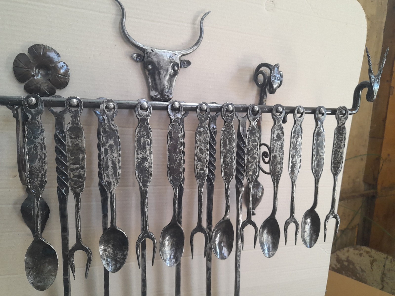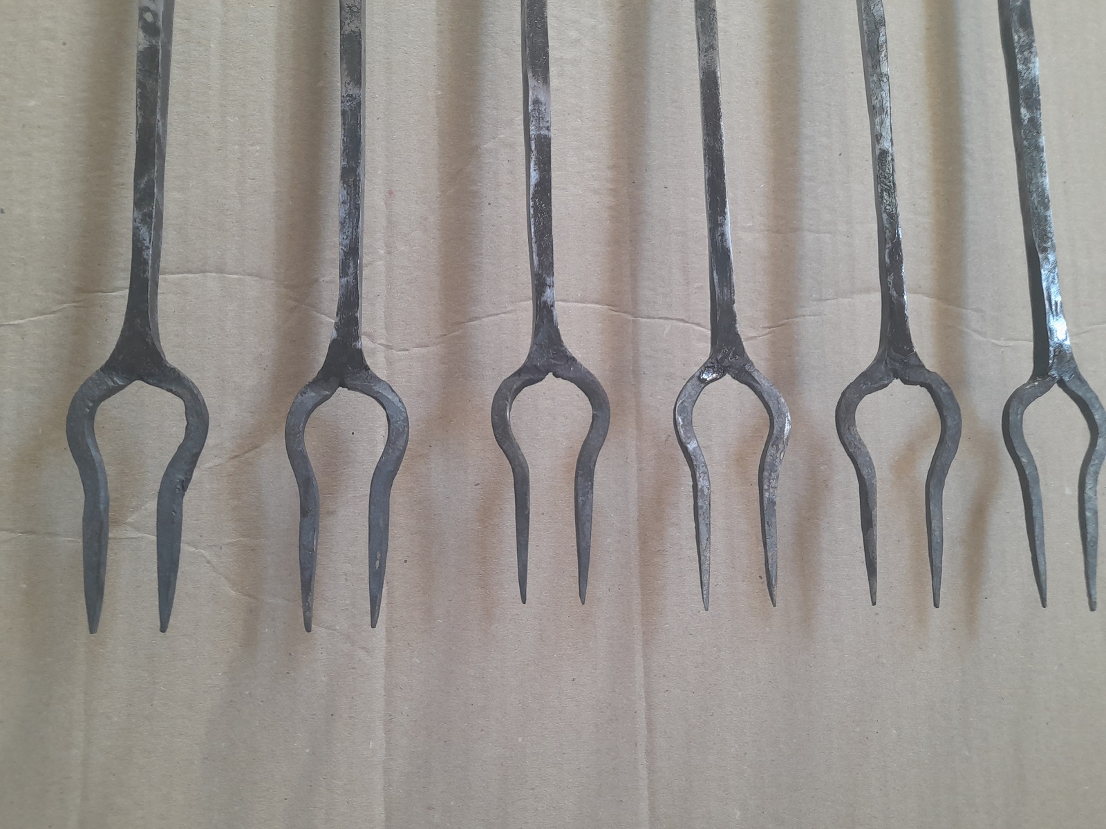 6 darab kovácsoltvas villa – masszív, erős nyéllel és időtálló hegyekkel.