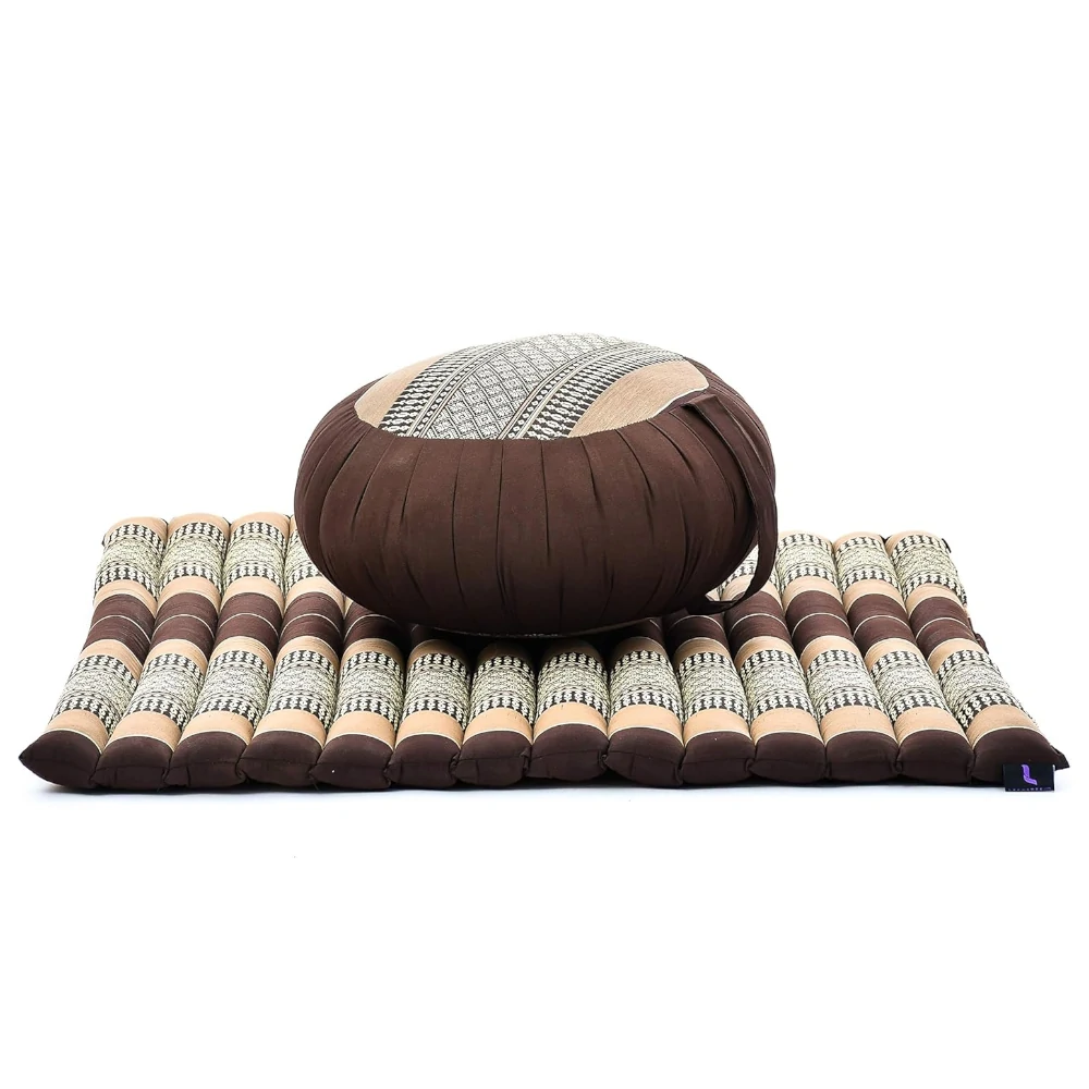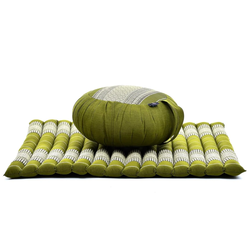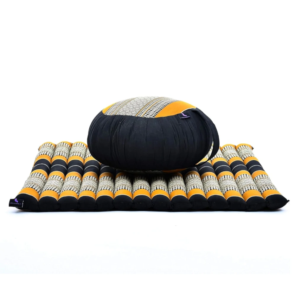 Ez a meditációs párna szett egy zafu ülőpárnából és egy zabuton meditációs matracból áll, amelyek együtt stabil, kényelmes és ergonomikus ülést biztosítanak meditációhoz, jógához és relaxációhoz. A természetes anyagok és a formatartó töltet hosszabb gyakorlások során is megfelelő alátámasztást nyújtanak.