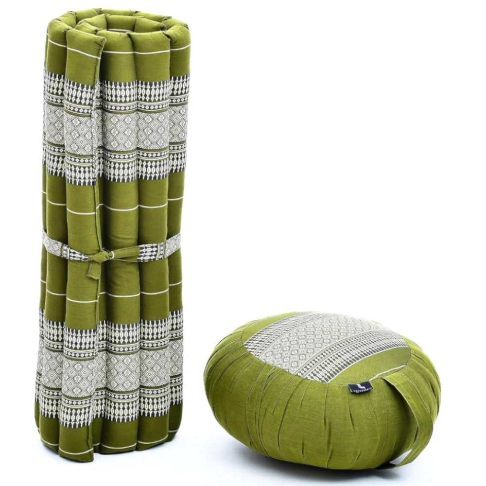 A Leewadee kényelmes meditációs szett ideális támogatást nyújt a meditációs gyakorláshoz. A tökéletes alátámasztást a nagy és kényelmes meditációs matrac biztosítja, amelyet zabutonnak is neveznek. A kerek meditációs ülőpárna, hagyományos nevén zafu, kényelmes, egyenes testtartást tesz lehetővé a jógagyakorlatok során. Hosszabb meditációs ülések alkalmával is magas komfortérzetet biztosít a meditációs ülőmatrac és a jógapárna.